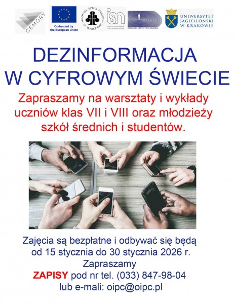Zapraszamy na warsztaty i wykłady uczniów klas VII i VIII oraz młodzieży szkół średnich i studentów. Tematyka spotkań dotyczyć będzie
